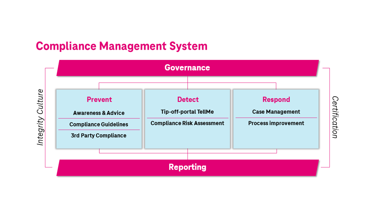 The Magyar Telekom Corporate Compliance Program (‘hereinafter ‘Compliance Program’) has been developed to create an internal culture where ‘Respect and Ethics’ is one of the most crucial values. The Compliance Program is enacted at all member companies of the Group where Magyar Telekom has effective control and is part of Deutsche Telekom's comprehensive compliance management system (CMS).