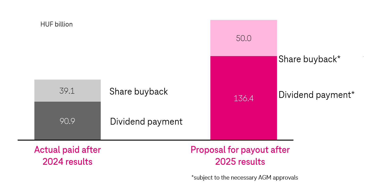 1) cash dividend of HUF 136.4 billion (corresponding to HUF 154 dividend per share)*
