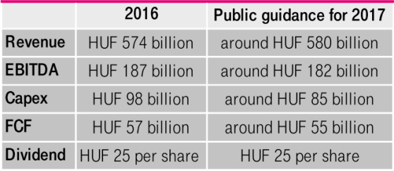 Looking ahead to the rest of the year, whilst we expect the various initiatives we have introduced in both the mobile and fixed line segments to continue to support our performance, we also anticipate an increase in competitive pressures both in Hungary and Macedonia. As such, our public targets for the full year 2017 remain unchanged.”