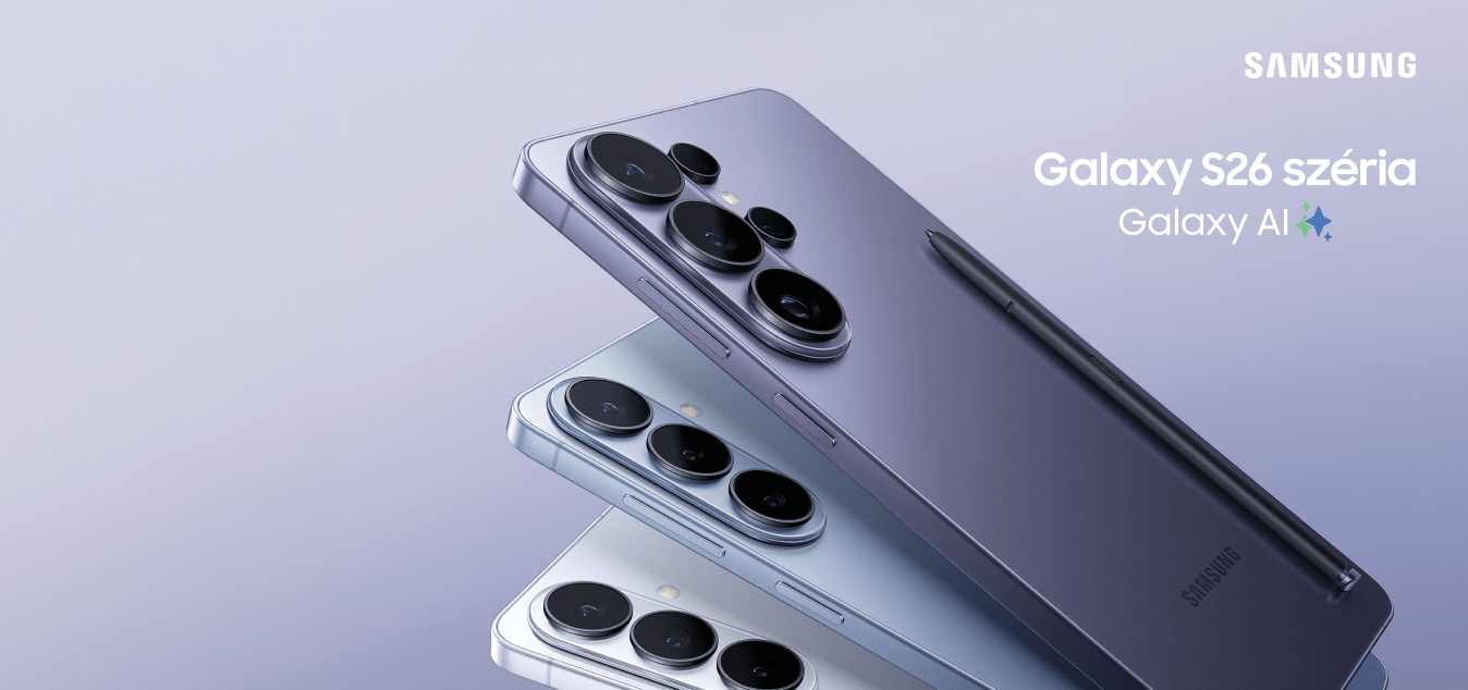 *A nagyobb tárhelyű készülék a kisebbel azonos áron promóciós ajánlat 2026. február 25. 19:00-től a készlet erejéig vagy visszavonásig, de legkésőbb 2026. március 31. 23:59-ig történő Samsung Galaxy S26 512GB, Samsung Galaxy S26+ 512GB, Samsung Galaxy S26 Ultra 512GB készülék vásárlása esetén érvényes.