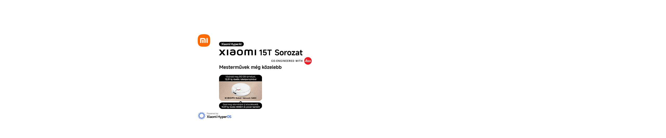 Vásárolj Xiaomi 15T vagy 15T Pro készüléket 512 GB-os tárhellyel, ráadás Xiaomi Robot Vacuum S40C porszívóval.