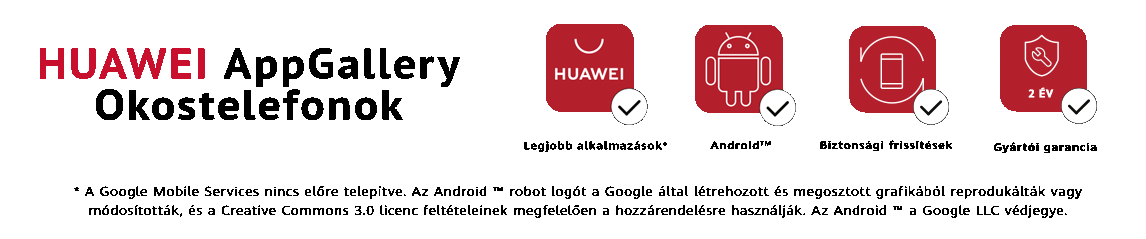 Kérjük, vásárlás előtt olvassa el figyelmesen az alábbi megjegyzést: Bizonyos Google Alkalmazások és a Google Mobile Services nem érhetők el a Huawei AppGallery készülékeken. Ez azt jelenti, hogy néhány harmadik féltől származó alkamazást jelenleg nem lehet használni. Autóvásárlás esetén érdeklődjön a forgalmazónál, hogy az Android Auto szolgáltatás működik-e a készülékével.