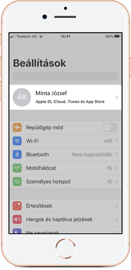 Válaszd ki az Apple ID megtekintését;