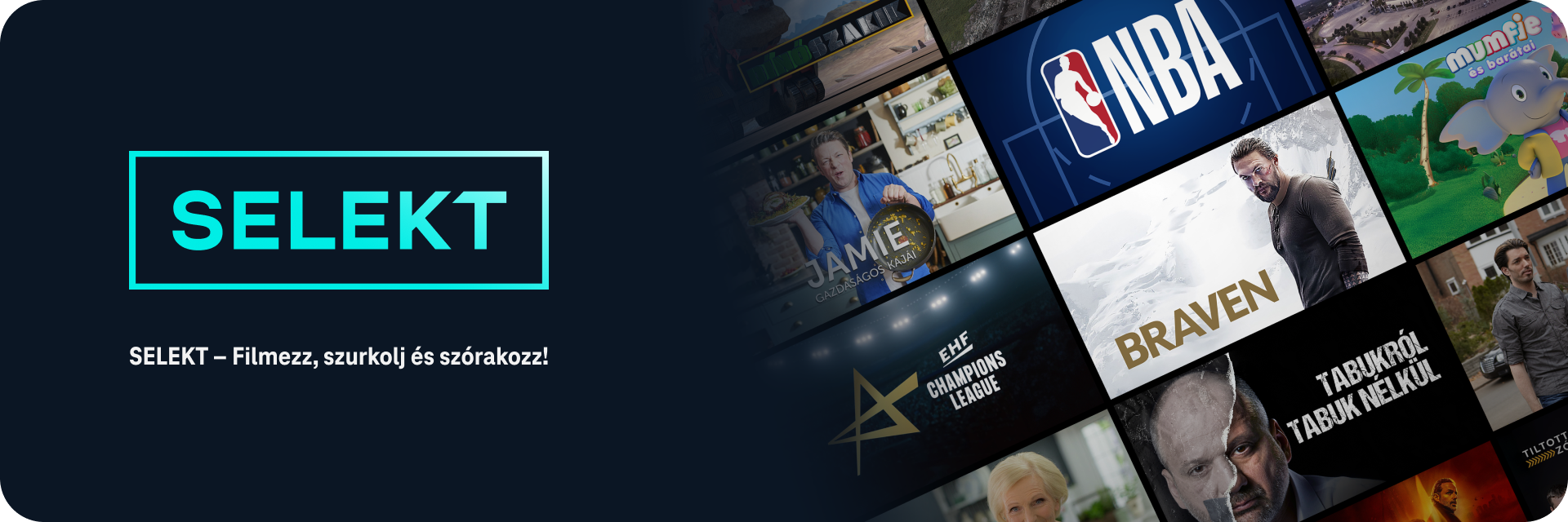 A SELEKT a streaming szolgáltatások új szintje, ahol a család minden tagja megtalálja a számára legizgalmasabb tartalmakat. Filmek, sorozatok, élő sportközvetítések, gasztro műsorok, ismeretterjesztő programok és gyerekműsorok egy helyen – minden, ami egy tökéletes szórakozási élményhez szükséges.