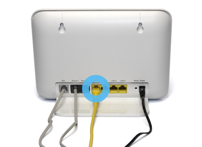 Csatlakoztasd a LAN kábelt a készülék hátoldalán lévő egyik sárga portba.
