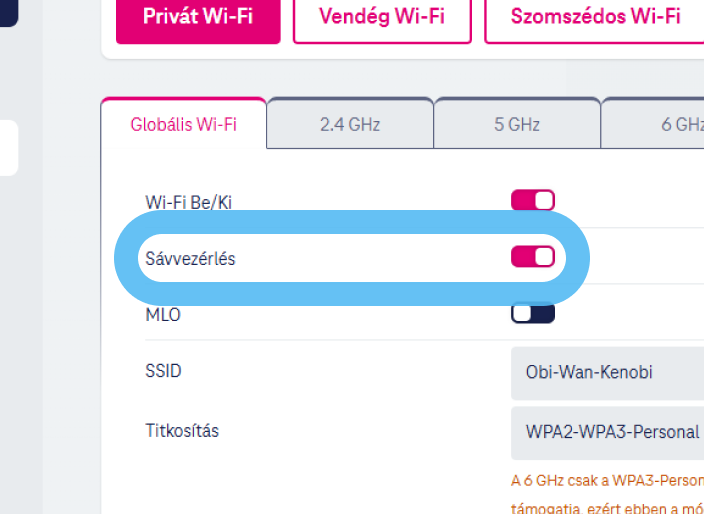 A külön frekvenciák esetében személyre szabhatod az adott frekvencia Wi-Fi beállításait. (pl. név, jelszó, titkosítás stb.)
