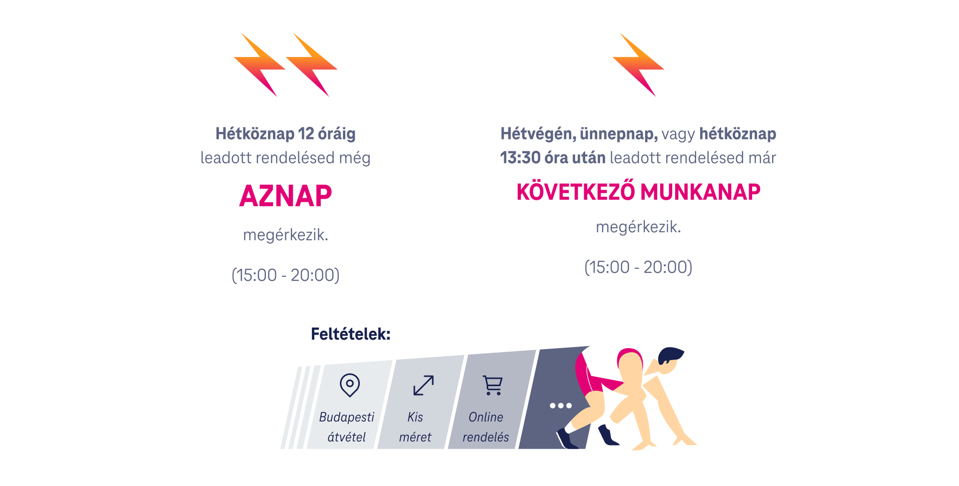 Ne csüggedj! Expressz szolgáltatással a normál házhozszállításnál gyorsabban, már a következő munkanapon kézhez is kaphatod a csomagod.