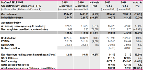 A Magyar Telekom 2016. második negyedévi eredményei