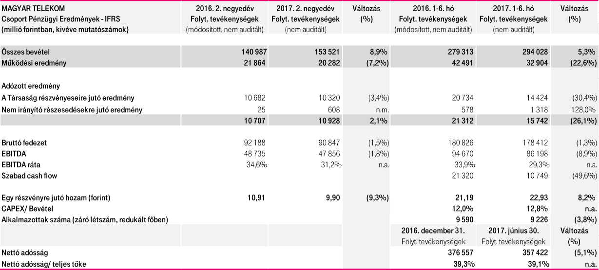 A Magyar Telekom 2017. második negyedéves eredményei