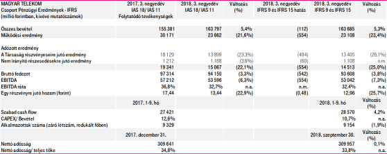 - A bruttó fedezet csökkenését a bevételi mixben jelentkező változások magyarázzák, valamint olyan egyszeri tételek hiánya, melyek 2017 harmadik negyedévét erősítették.