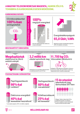 Korunk egyik legsúlyosabb problémája a klímaváltozás, ami nagyrészt az emberiség által a légkörbe juttatott szén-dioxid, és egyéb üvegházhatású gázok következménye. A Magyar Telekom fenntarthatósági stratégiája mentén, önkéntes vállalás keretében törekszik évek óta energiafelhasználása és szén-dioxid kibocsátása csökkentésére. 2015-ben – a hazai nagyvállalatok közül elsőként, az európai vezető távközlési szolgáltatók sorában pedig az elsők között – teljes mértékben karbonsemlegessé tette működését: a cégcsoport szén-dioxid kibocsátásának értéke nulla. A zsinórban harmadik évben elért karbonsemlegességgel így a globális klímaváltozás lassításáért is tesz a vállalat.