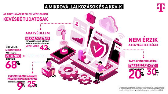 A Telekom megbízásából a BellResearch nemrég, a mikro-, valamint a kis- és közepes vállalkozások körében végzett reprezentatív kutatása* szerint a cégek kétharmadának a biztonságos működésről az informatikai eszközök, valamint a vállalati- és ügyféladatok biztonsága jut eszébe. Mindezek védelmét tűzfalak, vírusirtók alkalmazásával, biztonsági mentésekkel, a készülékek és a levelezések védelmével, jelszavak alkalmazásával biztosítottnak látják. Ugyanennyien gondolják úgy, hogy méretüknél fogva nem lehetnek célpontok, 70%-uk pedig meg van győződve arról, hogy nem kezelnek olyan adatokat, amelyek védelemre szorulnak. A cégek túlnyomó többsége (80%-a) ráadásul azzal is nyugtatja magát, hogy nincsenek olyan adataik, amelyeket nem lehet pótolni, úgy gondolkodnak, hogy egy adatvesztéssel járó incidens sem okozna megoldhatatlan kihívást a vállalati működésben. Ez pedig arra utal, hogy nemcsak a kockázat mértékét, de egy adatvesztéssel járó támadás súlyát is alábecsülik, hiszen nem számolnak azzal a felelősséggel, hogy az üzleti partnereikre vagy akár az ügyfeleikre vonatkozó információk biztonságáról is gondoskodniuk kell.