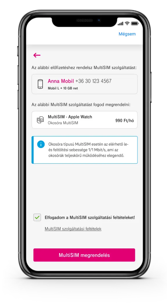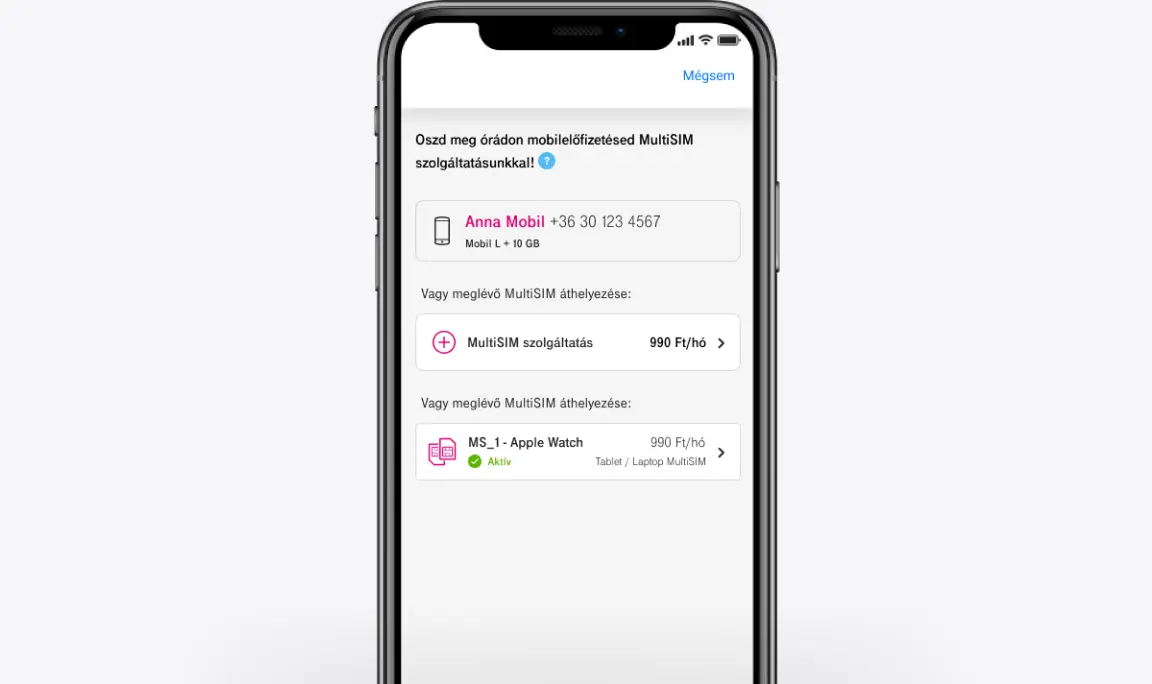 Az aktiváláshoz kizárólag az iPhone készülékedben használt telekomos mobilelőfizetésedhez van lehetőséged új MultiSIM szolgáltatást rendelni vagy meglévőt aktiválni.