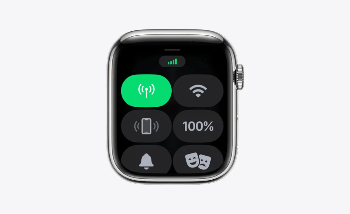 Miután az óra kapcsolódott a mobilhálózathoz, a Vezérlőközpontban, illetve a Felfedező nevű számlapon ellenőrizheted a jelerősséget. A Vezérlőközpont megnyitásához érintsd meg a képernyő alját, tartsd ott az ujjad, majd húzd felfelé.