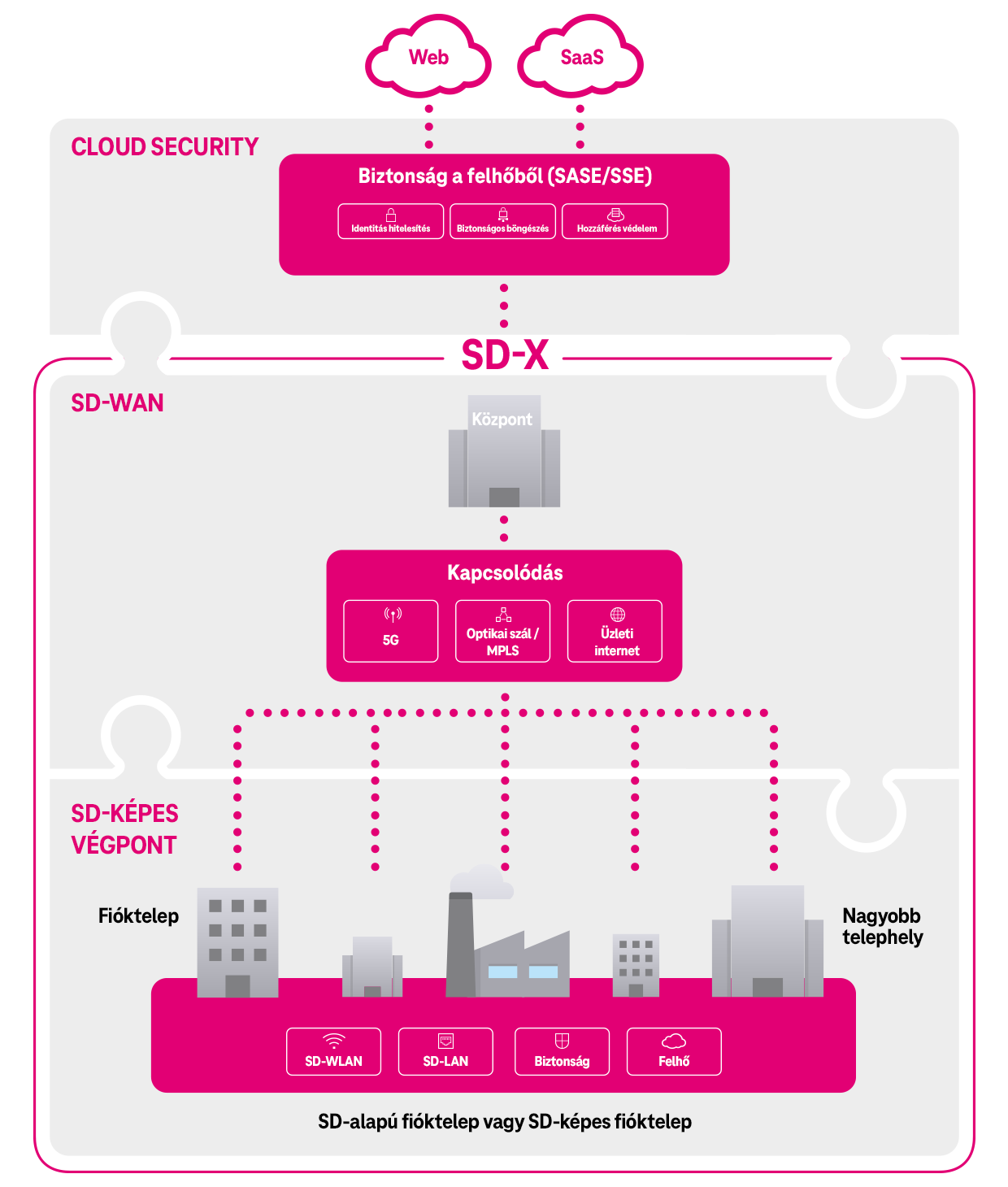 Dinamikusan bővíthető hálózat: az SD-X megoldás lehetővé teszi, hogy könnyedén bővítsék hálózatukat új helyszínek és telephelyek hozzáadásával.