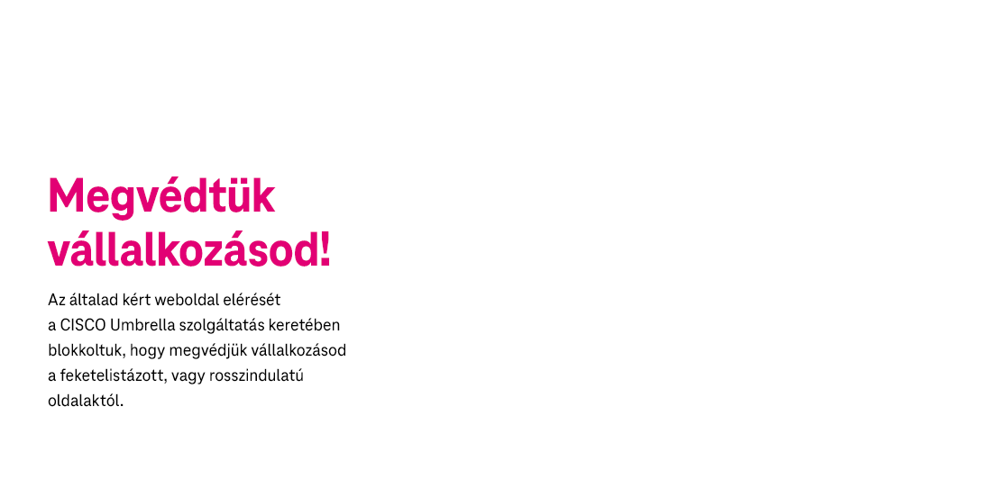 Az Üzleti Mobil (2025) díjcsomaghoz kérésedre, az Üzleti Mobil (2024) díjcsomagodhoz pedig a csomagod részeként biztosítjuk számodra a CISCO Umbrella adathalászat elleni kiegészítő szolgáltatását.